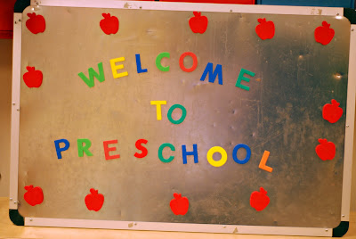 So she got up and she seemed fine! I didn't send her... Just in case. She seemed fine all day long. So I took her when I knew that her class would be getting out and we went to meet her teachers and give them their little back to school gifts. I wanted Molly to get to meet her teachers and felt like she knew where she was going, being as everyone had a day up on her! Her teachers could not have been cuter! They took Molly by the hand and showed her the room, walking her all around and telling her what to do when she comes back tomorrow, really they are darling!